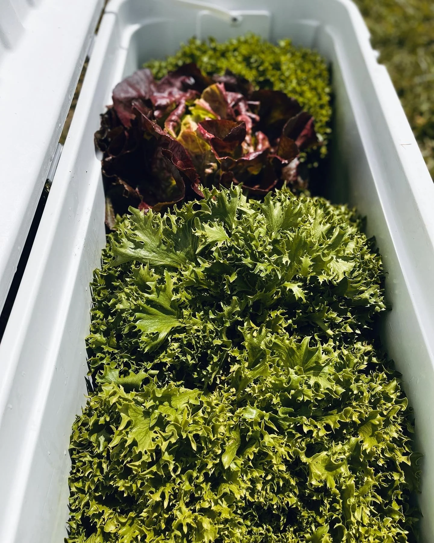 This will be our second and final cutting from this 50 foot row of loose leaf lettuce.